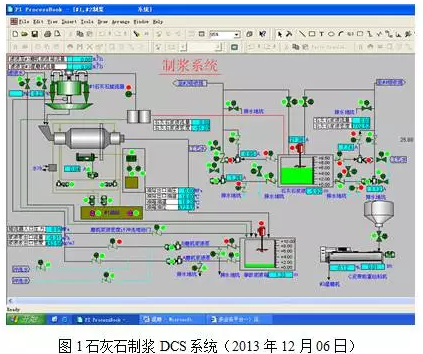 華電國際萊城電廠濕磨為濕式溢流型球磨機(jī),由濟(jì)南重工業(yè)公司生產(chǎn)制造,是由水平的筒體,進(jìn)出料空心軸及油系統(tǒng)等部分組成,石灰石及工藝水由濕磨入口進(jìn)料端空心軸進(jìn)入筒體內(nèi),當(dāng)球磨機(jī)筒體轉(zhuǎn)動(dòng)時(shí)候,由于慣性和離心力作用,摩擦力的作用,石灰石及水在筒體襯板上被筒體帶起,當(dāng)被帶到一定的高度時(shí)候,由于其本身的重力作用而被拋落,下落的物料沿拋物線摔出,將石灰石擊碎。磨碎后的石灰石漿液通過空心軸頸排至磨機(jī)漿液箱,該漿液經(jīng)磨機(jī)漿液循環(huán)泵送至旋流分離器,通過石灰石旋流作用對(duì)磨制的石灰石漿液進(jìn)行粗細(xì)顆粒分離,漿液中的大顆粒被分離到旋流分離器的底部形成底流濃漿,回到球磨機(jī)中再次碾磨;而漿液中的小顆粒則從頂部溢出形成稀漿進(jìn)入石灰石給料儲(chǔ)箱備用(圖1石灰石制漿及DCS系統(tǒng))。我廠設(shè)置3臺(tái)濕式球磨機(jī)(表1 制漿系統(tǒng)參數(shù)),對(duì)應(yīng)每臺(tái)濕式球磨機(jī)設(shè)100%容量的石灰石水力旋流器,每臺(tái)出力按4臺(tái)鍋爐BMCR工況下燃用設(shè)計(jì)煤種時(shí)FGD裝置需用石灰石量的50%考慮,并滿足校核煤種的需用。全廠4套脫硫裝置投運(yùn)時(shí),設(shè)計(jì)煤種下2臺(tái)磨機(jī)運(yùn)行、1臺(tái)磨機(jī)備用,校核煤種下3臺(tái)運(yùn)行。#3、4 脫硫系統(tǒng)設(shè)一個(gè)435m3,石灰石漿液箱. #1、2脫硫系統(tǒng)設(shè)一個(gè)435m3,石灰石漿液箱。