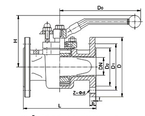 X43F46PO型襯氟旋塞閥結構簡圖: