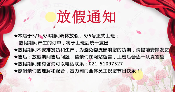 此文關(guān)鍵字:2019年,雷力,閥門,“,五一,”,放假,四天,今,