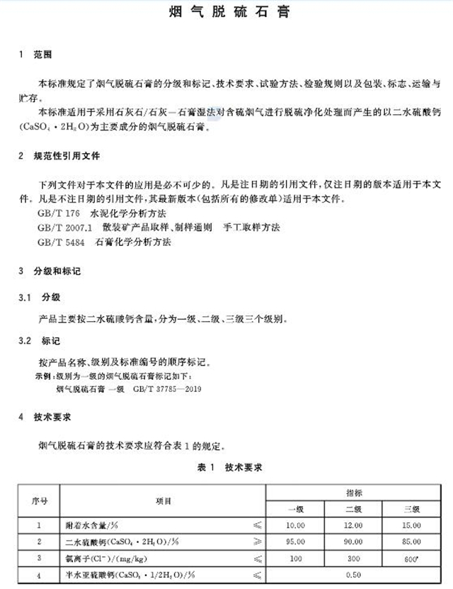 新頒布的《煙氣脫硫石膏》(GB/T 37785-2019)標(biāo)準(zhǔn)